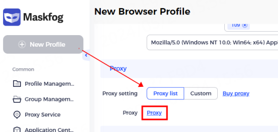 ① Enter the proxy name and select the proxy type according to the needs. Here we take socks5 as an example