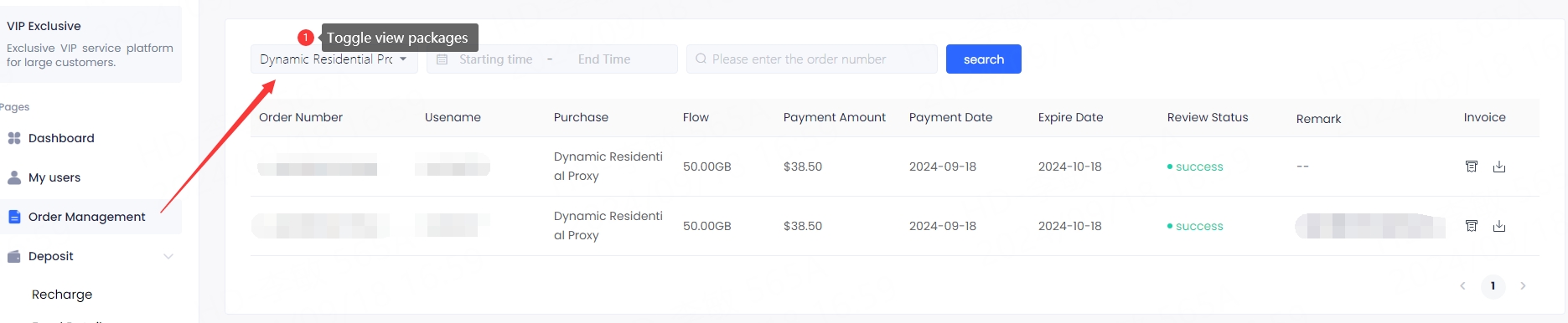 Step6. After confirmation, the corresponding balance will be deducted based on your allocated traffic/IP. You can view allocation records in [Order Management].