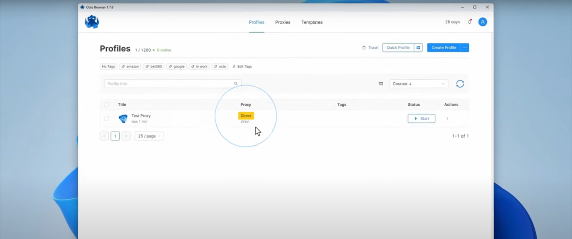 2. Click Connect and select Set a new proxy in the proxy drop-down box.