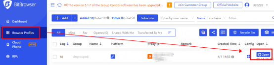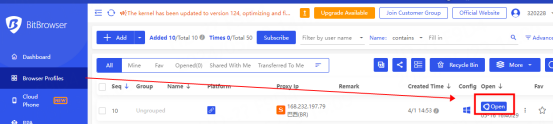 3. You can see the successfully configured browser in the browser configuration interface, click Open to use