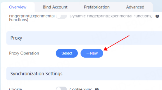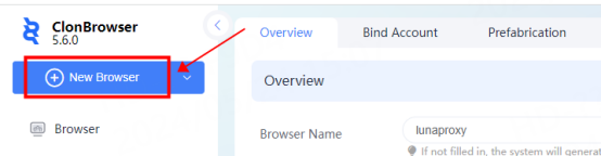 5. Click New Browser again to enter the configuration interface. Click Select in the proxy position