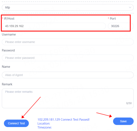 3. Select the protocol according to the needs. Here, take http as an example. Fill in the IP and port in the corresponding position, click Detect, and click Save after the detection is successful