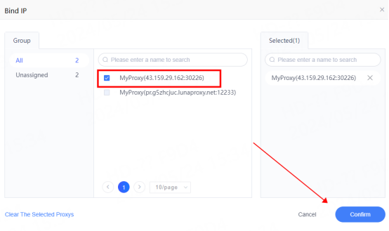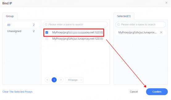 5. Select the proxy you just configured and click Confirm