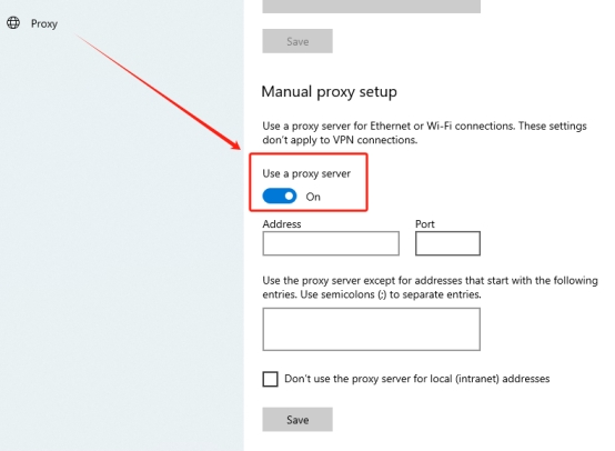 ②Fill in the residential IP and port in the "Address" and "Port" positions, then click "Save" to successfully configure