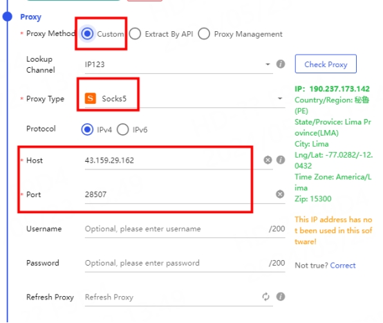 ①點選自訂代理,選擇需要使用的協議,這裡以socks5協定為例