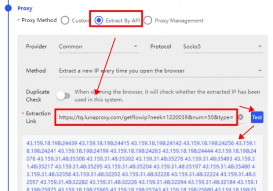 A.在代理處點擊用過API提取,將API連結貼到提取鏈接