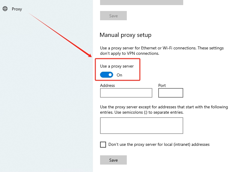 ②將住宅IP和端口填入「地址」「端口」位置,然後點擊「保存」並關閉該配置界面