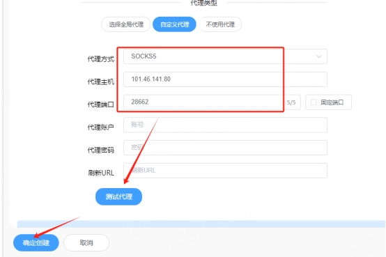 D.點擊檢測代理,檢測成功後,點擊確定創建